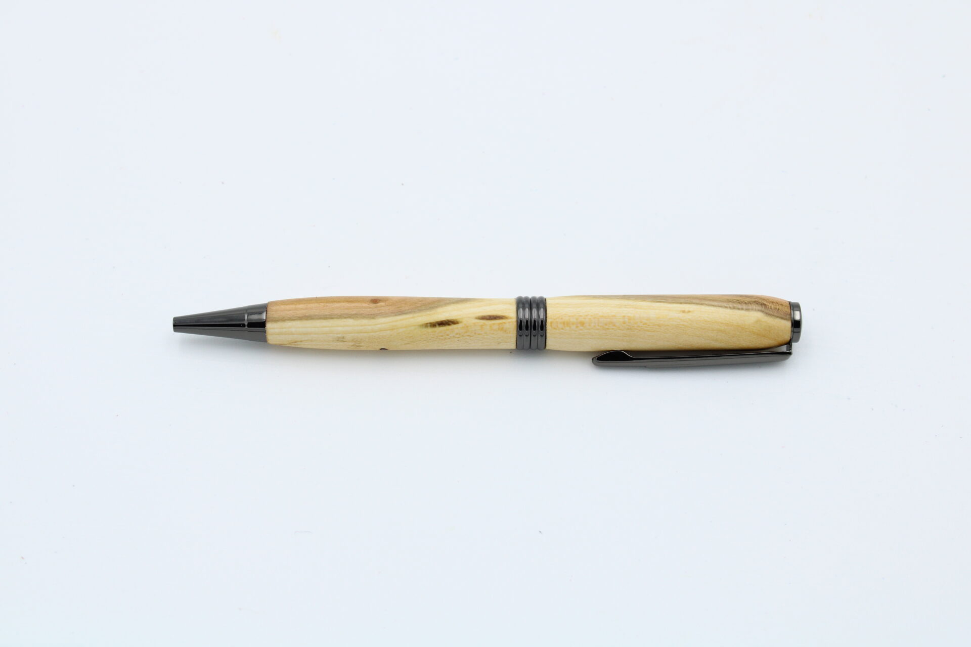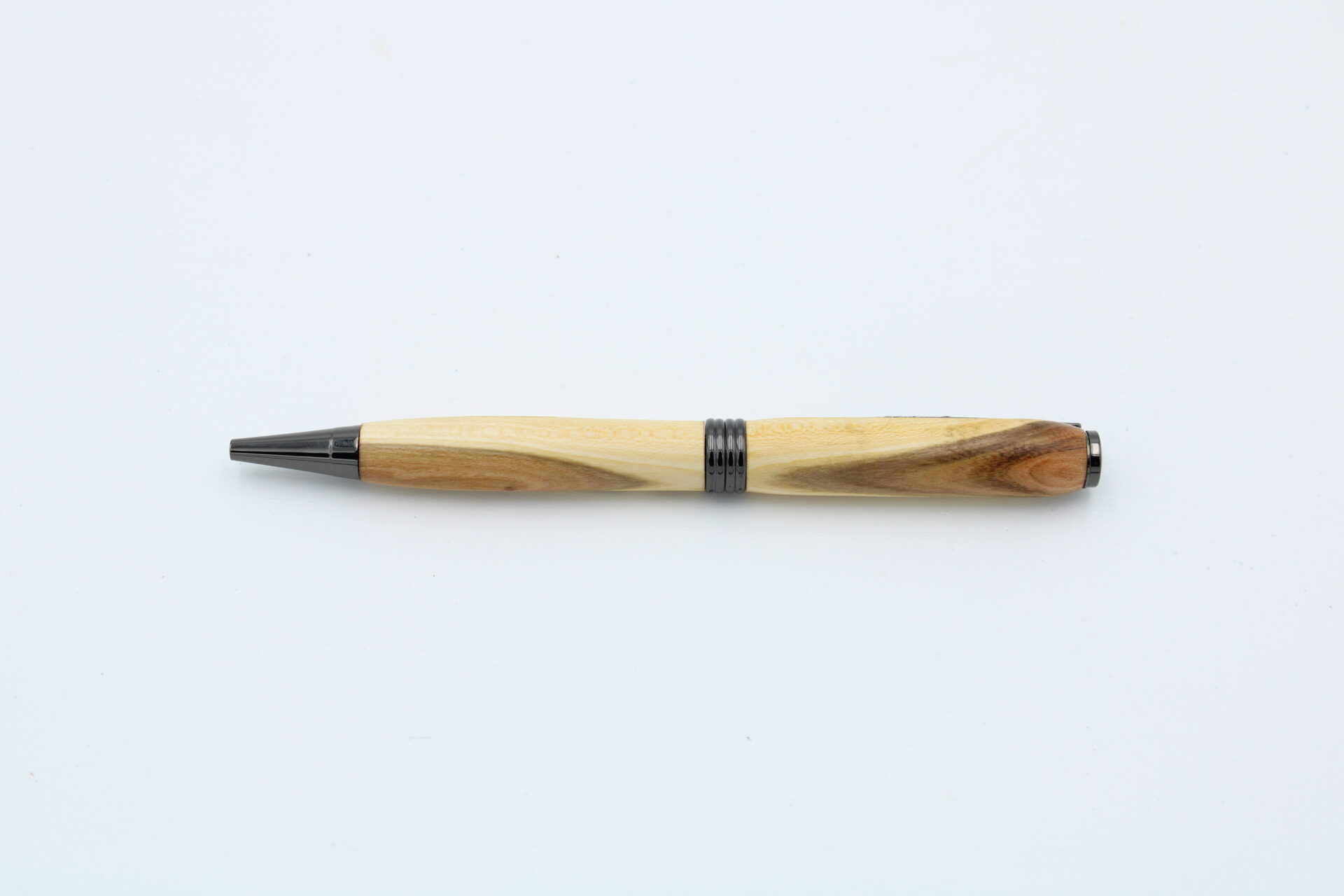 Drehkugelschreiber Modell “Streamline” aus Zwetschgenholz und Messing in Gunmetal-Optik.
