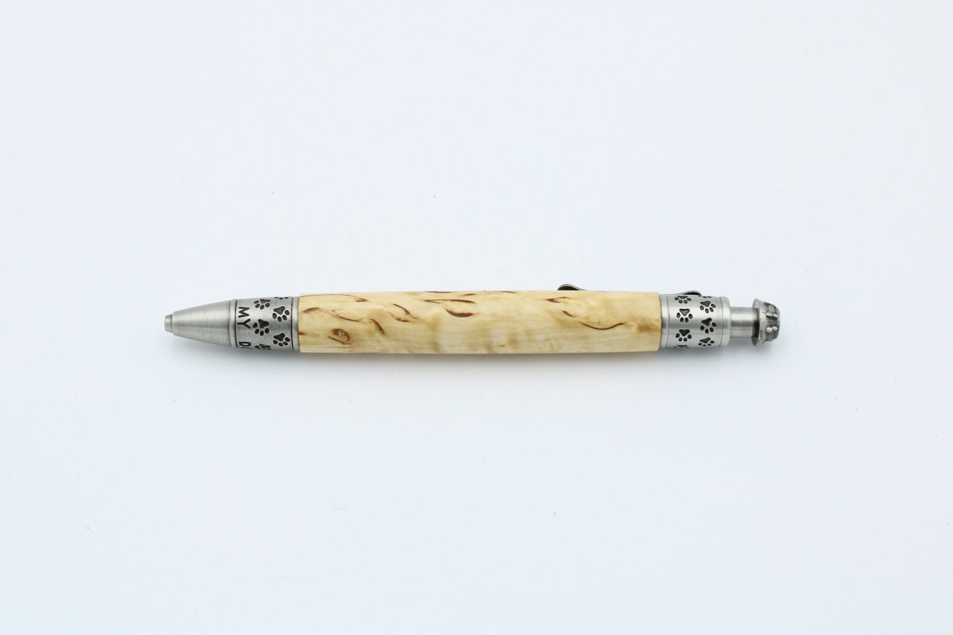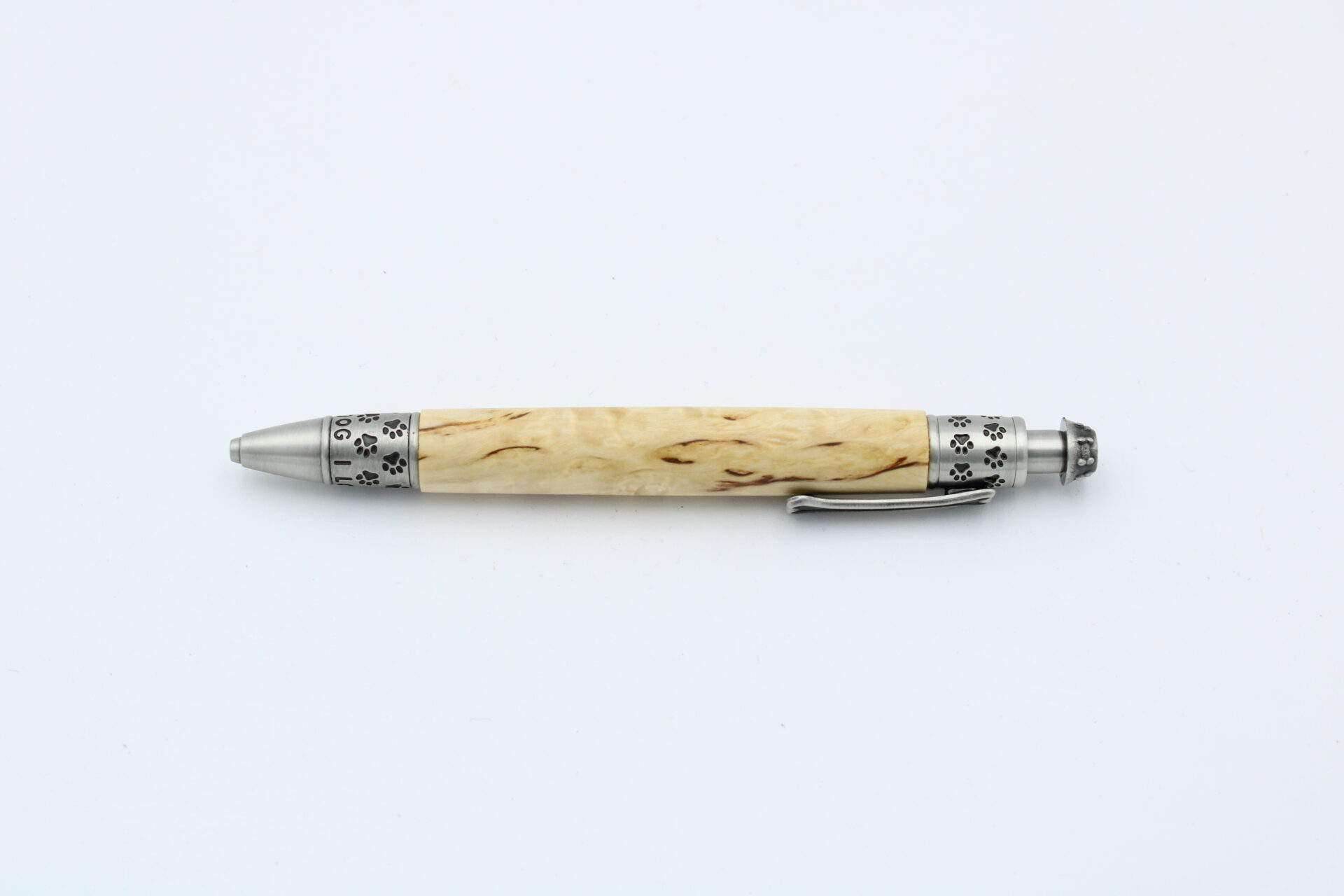 Die Metallkomponenten in Antik Zinn verleihen dem Druckkugelschreiber eine elegante und hochwertige Optik. Die Mine schreibt in Schwarz und sorgt für ein sauberes, gleichmäßiges Schriftbild.