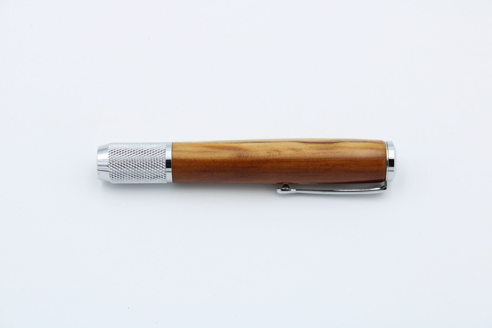 Kreidehalter aus Mirabelle. Metallkomponenten in Chrom für eine elegante Optik. Geeignet für 10 mm. Handgedrechselt und hochwertig verarbeitet.