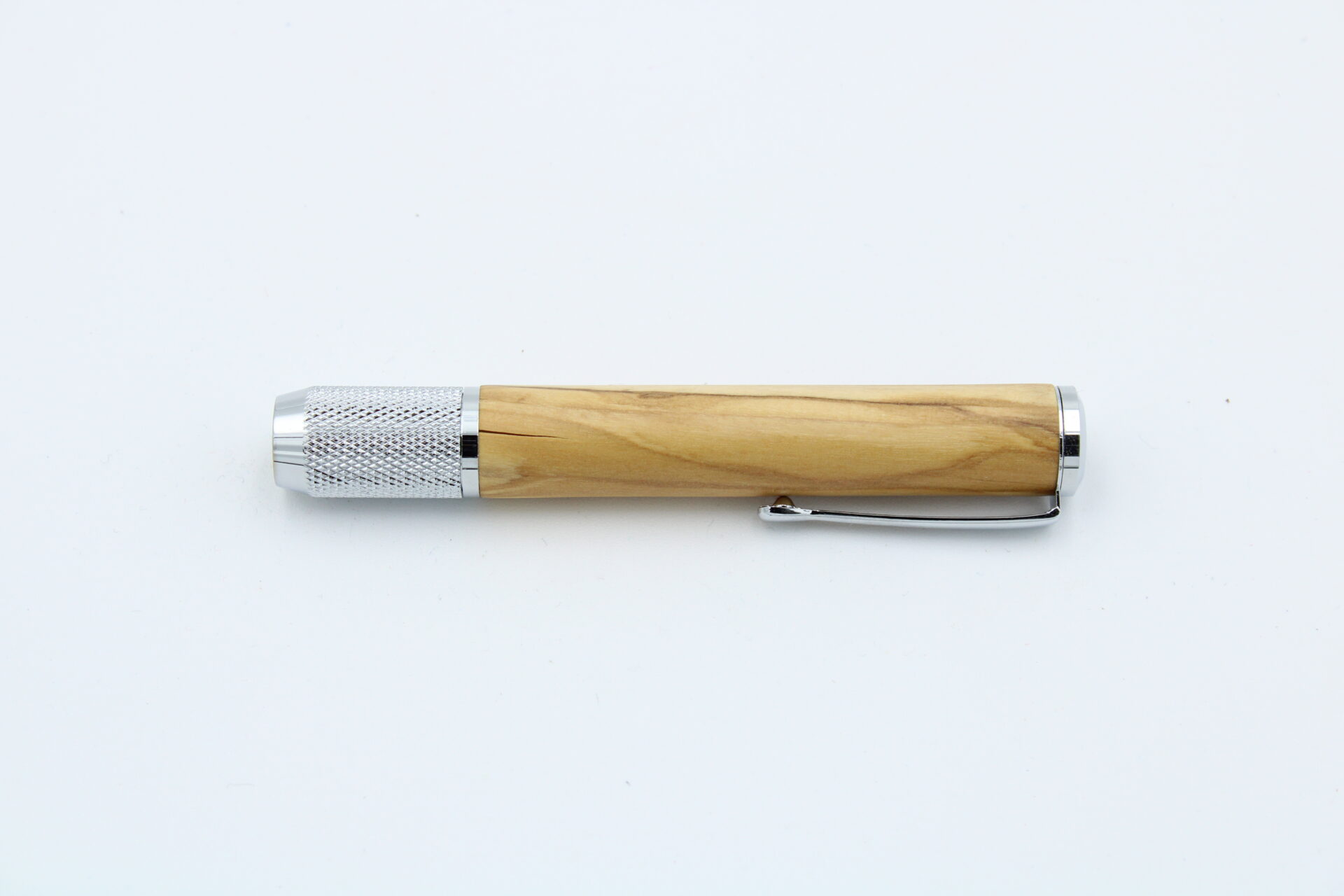 Kreidehalter aus Olivenholz und verchromten Messing.