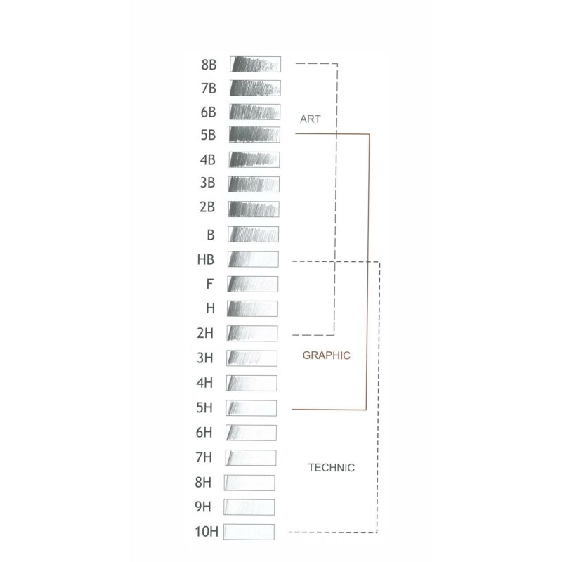 - Gradiation = 10H, 2B, 2H, 3B, 3H, 4B, 4H, 5B, 5H, 6B, 6H, 7B, 7H, 8B, 8H, 9H, B, F, H, HB